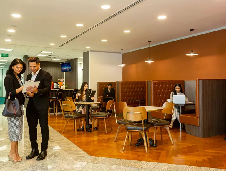 Great location, professional, high quality of service. Has all amenities near by. Easy to find and reach. Multiple transport options (carpark in building, taxi stop at reception, MRT/tube station under the building). Many shops and vast number of restaurants that would suit any preface and budget in minutes walking distance. Have dedicated office space, use regularly. Moved fm Regus due to failing service quality. Happy/do recommend.